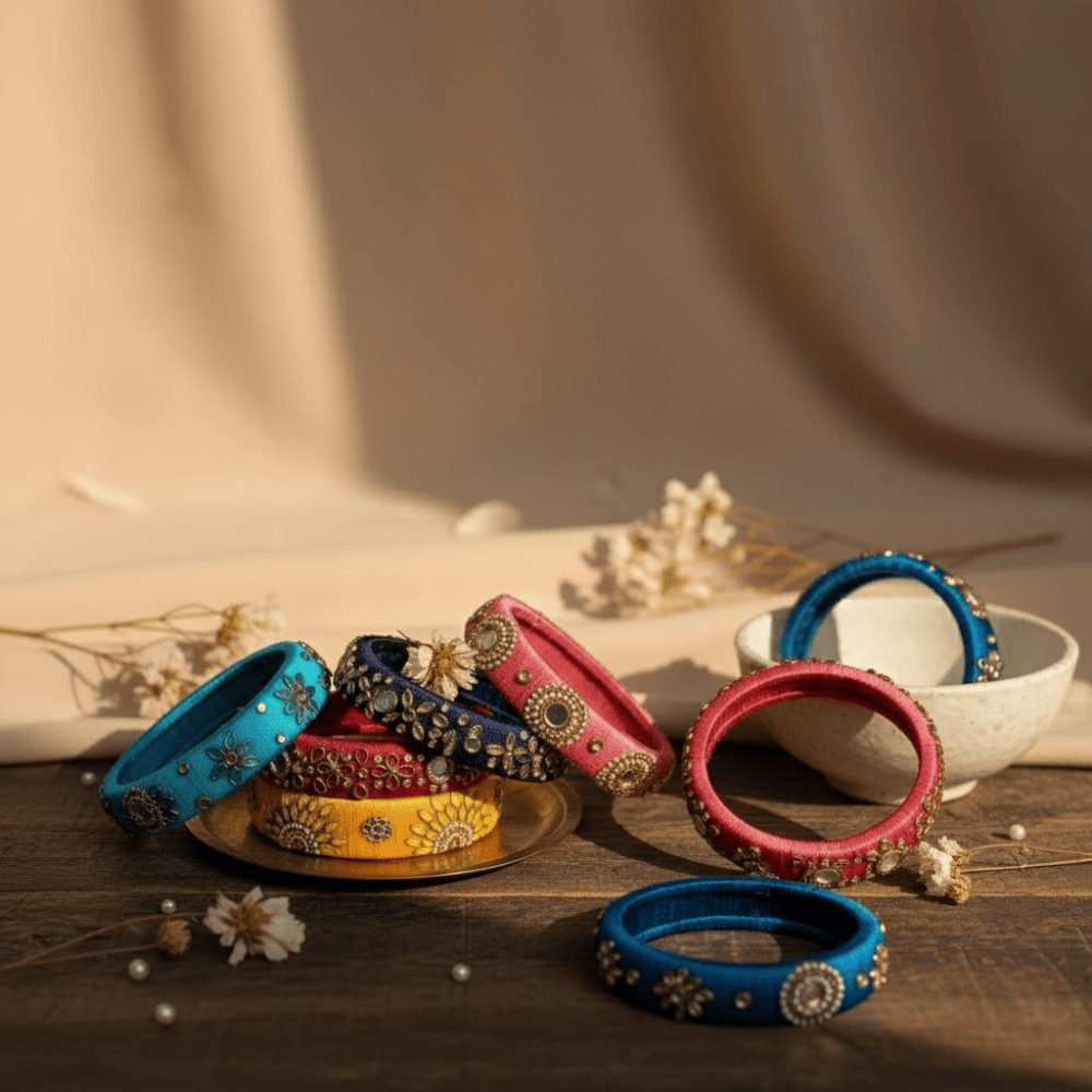 Add a touch of tradition and elegance to your look with our handcrafted Silk Thread Bangles, beautifully made to suit any occasion. Each bangle is wrapped in vibrant silk thread and carefully finished for a smooth, luxurious feel. Whether you’re dressing up for a wedding, festival, or casual outing, these bangles are the perfect accessory to express your unique style.